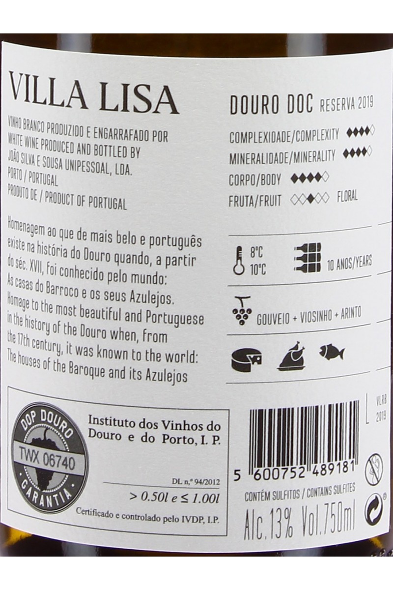 Branco - Denominação de Origem Controlada (DOC) DOURO Composição Varietal: Viosinho (33%), Gouveio (33%), Arinto (33%). Proveniência: Cima-Corgo (60%), Baixo Corgo (40%)